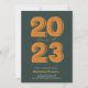 Prontos para agitar a sua cerimônia de formatura? O convite da nossa classe negra de 2023 irá adicionar um toque de criatividade ao seu dia especial! Apresentando uma fonte em negrito 2023 com contornos (todas as cores são editáveis) em verde-retrô, mostarda e terracota e 3 fotos no verso com um ousado sobredimensionado 2023.