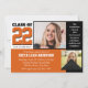 Classe de 22 convites para a graduação em inspiração laranja, branca e negra com duas fotos e uma mensagem especial. Altere as cores e o texto conforme preferido.