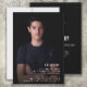 Convite para festas de formatura 2022 para rapazes com a sua foto e formando favoritos, nome da escola, ano de graduação e planos para o futuro na frente. A parte traseira do cartão tem informações sobre sua festa em um plano de fundo preto.
