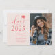 Modelo de convite para festas de formatura elegante e simples para formandos de segundo grau ou faculdade! O texto da tipografia contra o fundo cor-de-rosa diz "Classe 2025" na letra moderna da escrita. Você também pode adicionar uma imagem. Personalize este produto adicionando o nome do formando, a escola e as informações da parte.