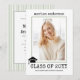 Classe de 2023 — convite para fotos de graduação de faixas verdes para máquinas de escrever. O verso inclui um padrão verde e branco sábio com listras.