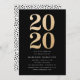 Comemore o formando no estilo enviando nossos convites para a festa de formatura Glitz e Glamor. Os convites modernos para festas de formatura apresentam "2020" num estilo falso de brilho dourado contra fundo preto. Personalize os convites de festa de formatura com brilho dourado adicionando os detalhes de sua parte em texto branco. O reverso dos convites apresenta um design de ponto preto e branco.