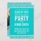 CLASSE DE RAPARIGA DE 2013, CONVITE DE FESTAS COM FOTO E UM EFEITO DE FOTOGRAFIA EM TEAL OU AQUA BLUE GLITTER EM UMA COR DE FUNDO SÓLIDA E BRANCA DE TEAL AZUL E TEXTO MODERNO QUE VOCÊ PODE PERSONALIZAR E PERSONALIZAR O FONAGEM DE TEXTO. Um design giro, legal, giro, divertido, moderno, simples para o formando da menina, sua filha formada. Adicione sua própria foto ou gráficos à frente ou atrás das placas. formando Segundo grau, formando universitário, formando universitário. Adicione suas informações de participante, nome e outros detalhes. Design por Elke Clarke©