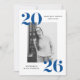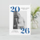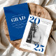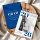 Convide os convidados para a sua festa de formatura com os nossos convites para festas de formatura do Bold 2025. A festa de formatura na moda convida a exibir a foto do formando em branco, com 2025 em letras azuis em negrito nos cantos superior esquerdo e inferior direito. Personalize a frente dos convites para festa de formatura de fotos adicionando o nome do formando e o nome da escola. O convite reverte para exibir os detalhes do seu partido em letras brancas contra um fundo azul sólido.