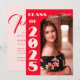 O moderno script de retro-chic fica sobre um fundo vermelho suave e ao redor da sua foto de formando. Adição perfeita à sua decoração de festa de formatura!