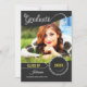 Tema do quadro em ambos os lados com sotaque amarelo "giz" no texto. Personalizar frente e verso com a foto do formando e as informações pertinentes para anunciar a formatura e/ou convidar as pessoas para a cerimônia.