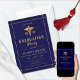 Dourado caduceus Classe de 2025 Convite à graduação formal de azul marinho. Comemore o formando da Classe de Medicina de 2025 com esses convites de graduação em azul marinho cuidadosamente projetados. Decorados com um caducênio-ouro, símbolo icônico da medicina, esses convites transmitem imediatamente o campo de estudos do formando. Adiciona-se um toque sutil, mas sofisticado, com bordas de ouro finas que se intersetam nos cantos da placa. Use este convite para convidar formalmente sua família e amigos a compartilhar a alegria deste marco significativo, mostrando o compromisso do formando com este belo e apropriado design.
