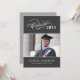 Anuncie seu segundo grau ou formando universitário em estilo com este elegante anúncio de graduação de script e convite de festas. A placa dupla possui duas fotos do formando, texto branco personalizado e acentos de script caligráfico. As cinzas suaves de preto/carvão e as cores de fundo das cinzas podem ser modificadas para se coordenarem com as cores da sua foto ou escola.