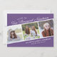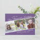 Este convite para a graduação oferece três quadros de fotos quadrados acentuados com texto elegante de script em um fundo roxo. Isso é perfeito para gêmeos, trigêmeos ou amigos que estão celebrando juntos sua formatura.