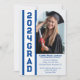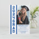 O convite para Formandos negros e modernos funciona para a Escola do Meio, Segundo grau ou Faculdade. Posicione seu Formando sorridente com uma faixa nas cores azul e branca da escola. As informações da parte de Formando podem ser adicionadas na parte inferior! Parte da graduação! Coleção, procure um conjunto completo de produtos de Formando.