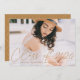 Convide convidados para comemorar o formando com nossos convites para a graduação em na moda. A frente dos convites para festas de formatura mostra a foto do formando com "Classe 2025" em uma cobertura de script de caligrafia moderna dourada. Personalize a frente dos convites para festas de formatura modernos adicionando o nome do formando, o nome da escola e o ano de graduação. O convite reverte para exibir os detalhes da sua festa de formatura e um padrão geométrico em dourado e branco pontilhado. O design é perfeito para segundos graus e formandos universitários.