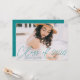 Convide convidados para comemorar o formando com nossos convites para a graduação em na moda. A frente dos convites para festas de formatura exibe a foto do formando com "Classe 2025" em uma cobertura teal moderna de script de caligrafia. Personalize a frente dos convites para festas de formatura modernos adicionando o nome do formando, o nome da escola e o ano de graduação. O convite reverte para exibir os detalhes da sua festa de formatura e um padrão geométrico pontilhado e preto branco. O design é perfeito para segundos graus e formandos universitários.