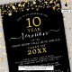 Convite de reunião de classe moderno e elegante para qualquer reunião de ano (mostrada para 10 anos) com estrelas e luzes douradas, tipografia elegante de script manuscrito e um fundo de cores personalizado (mostrado em preto) você pode mudar para a cor da sua escola ou para a cor do tema da festa. Todo texto é editável para fazer o seu. Este convite também está disponível como download de arquivos digitais para compartilhamento digital ou on-line. ASSISTÊNCIA: para obter ajuda sobre modificação ou personalização do design, alteração de cor, redimensionamento, transferência do design para outro produto ou você gostaria de coordenar itens, entre em contato com o designer ANTES DE ENCOMENDAR através da guia MENSAGEM de bate-papo Zazzle abaixo ou envie um email para makeitaboutyoustore@gmail.com.