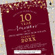 Convite de reunião de classe moderno e elegante para qualquer reunião de ano (mostrada para 10 anos) com estrelas e luzes douradas, tipografia elegante de script manuscrito e um fundo de cores personalizado que você pode mudar para a cor da sua escola ou para a cor do tema da festa. Todo texto é editável para fazer o seu. ASSISTÊNCIA: para obter ajuda sobre modificação ou personalização do design, alteração de cor, redimensionamento, transferência do design para outro produto ou você gostaria de coordenar itens, entre em contato com o designer ANTES DE ENCOMENDAR através da guia MENSAGEM de bate-papo Zazzle abaixo ou envie um email para makeitaboutyoustore@gmail.com.