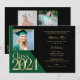 Anúncio de graduação e convite da classe verde e Dourada de 2024 em preto com destaque para a cor da escola moderna e na moda em verde. Design verde verde verde e ousado a cores editáveis e 2024 em ouro sobre fundo preto com cubo de foto de quadro quadrado no verso com espaço para 4 fotos a cores de cheio adicionais.