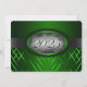 Festa de formatura verde e prateada com faixas verdes claras e escuras e uma fita prateada passando mostrando o ano de graduação. A parte traseira do cartão está verde com fonte prateada clara para as pessoas preencherem os convites de festa de formatura.