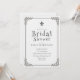 A refined black and white bridal shower invitation featuring timeless serif typography and elegant ornamental framing. Designed with balanced white space and graceful lettering, this classic layout evokes vintage sophistication while keeping the focus on the bride’s name. Perfect for formal, traditional, or upscale celebrations with a minimalist aesthetic and enduring style.