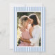 Announce your wedding in style with this classic blue hydrangea wedding invitation, featuring a timeless, refined aesthetic. This elegant wedding invitation features a hand-drawn hydrangea illustration in a soft blue tone, paired with sophisticated serif typography and a script accent for a look that feels both traditional and modern, while the clean layout keeps your wedding details easy to read and beautifully presented. The back of the invitation includes a framed photo area where couples can showcase an engagement photo within a crisp white border set against a blue and white striped background, adding a personal touch while maintaining a polished, heritage-inspired look. Perfect for garden weddings, estate weddings, formal ceremonies, and traditional weddings, this blue hydrangea wedding invitation is ideal for couples drawn to classic, old money, and quiet luxury wedding styles, and can be personalized with your wording and photo to create a meaningful and timeless design that coordinates seamlessly with a botanical or classic wedding theme.