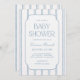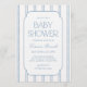 An elegant baby shower invitation featuring soft blue watercolor stripes and timeless typography. A classic, understated design for a beautifully refined celebration.