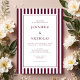 Classic Burgundy Stripes Wedding Invitation.