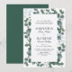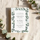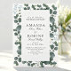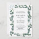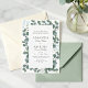 Classic botanical wedding invitation featuring soft green watercolor eucalyptus leaves arranged in an elegant rounded frame composition. Designed for couples who love romantic garden aesthetics, timeless elegance, and refined botanical style. This invitation blends classic typography with soft natural greenery, making it perfect for formal weddings, garden venues, estate ceremonies, and elegant outdoor celebrations. The balanced botanical border and airy layout create a sophisticated, romantic, and timeless wedding invitation style. Fully customizable for names, dates, venue, and event details.