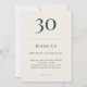 Deep forest green and linen cream birthday invitation featuring classic minimalist typography. Designed for a refined 30th celebration with customizable name age date time location and RSVP details.