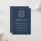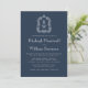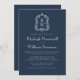 Convites Classic Navy Blue Monogram Crest QR Code Wedding