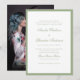 Combine timeless elegance with a personal touch using this classic real sage green script and photo wedding invitation. The front features refined script typography in a true sage green hue, offering a fresh, natural look that feels classic and inviting. The back showcases your favorite engagement photo, creating a meaningful and memorable presentation for your guests. This balanced design blends formal typography with modern photo styling, making it ideal for garden, classic, and modern romantic weddings.