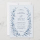 This elegant botanical winter wedding invitation with details on back features soft dusty blue florals arranged in a delicate wreath, creating a timeless and romantic look. Inspired by vintage botanical illustrations and icy winter tones, this classic design is perfect for winter weddings, formal celebrations, and elegant seasonal ceremonies. The refined typography pairs beautifully with the cool blue palette, making it ideal for traditional, garden-inspired, or vintage winter weddings. Easily personalize with your wedding details for a polished and sophisticated invitation your guests will love.