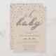 Um modelo simples, moderno, elegante e convite de festas de menino chico, com um fundo bege texturizado, a palavra BABY coberta em diamantes brancos (simulados, não em diamantes reais) e em roteiros de caligrafia modernos, e tipografia em preto. Um design chic, eterno para uma mamãe futura.