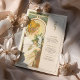 Adicione um toque de elegância clássica ao seu casamento com este cartão de cardápio inspirado no Art Nouveau, com uma mulher sofisticada num cenário quente e vintage. Esse design capta a essência da beleza eterno com detalhes intrincados, desde padrões mosaicos e sotaques de ouro mole até os ricos verdes e brancos em seu entorno. O vestido delicado da mulher, aliado às joias do ornamentado, exude luxo e sofisticação. O verso do cartão oferece um esquema de menu refinado em uma fonte elegante, perfeito para casamentos antigos, clássicos ou temáticos de Art Nouveau. Esta carta traz o charme e romance de uma era passada para a sua celebração especial.
