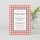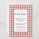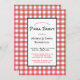 Convide seus convidados para a sua festa de pizza no interior ou no quintal com este convite clássico com um padrão de verificação de gingham vermelho e branco com texto preto em um estilo de fonte casual.
