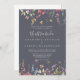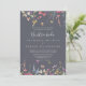 Este clássico convite de casamento da nuestra floral azul selvagem é perfeito para um casamento tropical. O design apresenta flores silvestres, rosa, púrpura, amarela, burgundy, marinho e azul, desenhadas à mão, organizadas em lindas formas.
