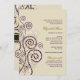 Esta carta de convite religioso sem foto, neutra em relação ao gênero ou bat mitzvah jewanted apresenta padrões espirais boêmicos únicos e pontos com texto clássico e uma banda preta com trims de ouro na parte de trás da carta.