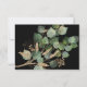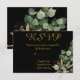 RSVP personalizável adequado para qualquer ocasião casamentos, aniversários, festas, simples e elegante com fundo branco e escrita em dourado e padrão botânico de eucalipto no verso