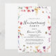 Este clássico e colorido convite de festas floral floral é perfeito para uma nova celebração rústica da casa. A design apresenta flores silvestres brancas, amarelas, roxas e brancas com folhagem em fundo de rosa e aquarela verde.