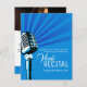 Imagens gráficas de microfone cromo estilo retrógrado e linhas de projeção vocal com sua própria foto ou fotos no recital vocal inverso convites azul e branco. Perfeito para convidar famílias e amigos a voar, cantar ou abrir microfone, musical ou falando em recital. Personalize com seus próprios detalhes de evento. Outros itens correspondentes estão disponíveis. © design exclusiva e ilustração de Sarah Trett para www.mylittleeden.com (foto de reserva de Obie Fernandez no Unsplash).