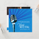 Imagens gráficas de microfone cromo estilo retrógrado e linhas de projeção vocal com sua própria foto ou fotos no recital vocal inverso convites azul e branco. Perfeito para convidar famílias e amigos a voar, cantar ou abrir microfone, musical ou falando em recital. Personalize com seus próprios detalhes de evento. © design exclusiva e ilustração de Sarah Trett para www.mylittleeden.com (foto de reserva de Obie Fernandez no Unsplash).