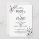 Convite de casamento clássico e elegante em preto e branco com a redação tradicional e flores lírios. Opções digitais de papel impresso ou físico. Personalize-o com os nomes do Sr. e Sra., localização do local, registro, informações de RSVP, e quaisquer detalhes que você precise incluir. Produtos de suíte correspondentes disponíveis.