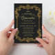 Convites Clássico Elegante Negro Dourado Tiara Quinceanera
