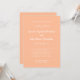 Convites de casamento elegantes e simples em um belo tom pêssego e branco são clássicos, formais e atemporais. O design sem bordas permite que você escolha facilmente a forma do papel para o seu convite para convidar os convidados para a sua celebração. Dois floreios decorativos, cada um contendo um único coração, envolvem delicadamente o nome da noiva e do noivo. Uma única linha de texto no topo lê "junto com seus pais", mas pode ser editada para atender às suas necessidades. Outras configurações de texto estão disponíveis neste conjunto de convites. Para obter resultados ótimos, siga o exemplo do modelo, capitalizando as palavras como na amostra.