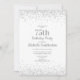 Clássico e elegante convite de aniversário 75º em branco com brilho prateado e fonte de caligrafia. Entre em contato conosco para obter ajuda com a personalização ou para solicitar produtos correspondentes.
