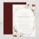 Este convite clássico de bodas de ouro para o 50º aniversário de casamento é perfeito para um evento rústico. O design apresenta flores e frutos em aquarela branca, borgonha e dourado com folhagem verde organizada em buquês elegantes.