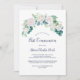 Este clássico convite de primeira comunhão de flores brancas é perfeito para um evento de primavera. O elegante design floral apresenta marfim macio e rosas brancas, peonias e crisântemo com toques de flores azuis de cor azul-rosada e folhagem verde.
