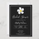Um simples design moderno com uma flor simbólica, tipo de escrita branca e um contorno branco sobre o preto formal. O fundo tem todos os detalhes do casamento, personalize a frente e volte aos detalhes do seu dia especial. Uma procura clássica por um caso formal. Estilo correspondente no Chá de panela, RSVP, Salvar a Data e muito mais. A flor da Lei Havaiana, Plumeria, é um símbolo de "novos começos".
