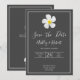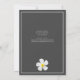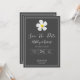 Um simples design moderno com uma flor simbólica, tipo de escrita branca e um contorno branco sobre cinzas escuras. O fundo tem todos os detalhes do casamento, personalize a frente e volte aos detalhes do seu dia especial. Uma procura clássica por um caso formal. Estilo correspondente no Chá de panela, RSVP, Salvar a Data e muito mais. A flor da Lei Havaiana, Plumeria, é um símbolo de "novos começos".