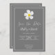 Um simples design moderno com uma flor simbólica, tipo de escrita branca e um contorno branco sobre a cinza. O fundo tem todos os detalhes do casamento, personalize a frente e volte aos detalhes do seu dia especial. Uma procura clássica por um caso formal. Estilo correspondente no Chá de panela, RSVP, Salvar a Data e muito mais. A flor da Lei Havaiana, Plumeria, é um símbolo de "novos começos".