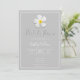 Um simples design moderno com uma flor simbólica, tipo de escrita branca e um contorno branco sobre as cinzas de luz. O fundo tem todos os detalhes do casamento, personalize a frente e volte aos detalhes do seu dia especial. Uma procura clássica por um caso formal. Estilo correspondente no Chá de panela, RSVP, Salvar a Data e muito mais. A flor da Lei Havaiana, Plumeria, é um símbolo de "novos começos".