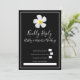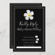 Um simples design moderno com uma flor simbólica, tipo de escrita branca e um contorno branco sobre o preto formal. O fundo tem todos os detalhes do casamento, personalize a frente e volte aos detalhes do seu dia especial. Uma procura clássica por um caso formal. Estilo correspondente no Chá de panela, RSVP, Salvar a Data e muito mais. A flor da Lei Havaiana, Plumeria, é um símbolo de "novos começos".