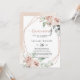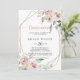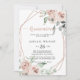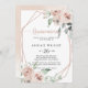 Esta rosa rosa rosa poeirenta geométrica O convite de Quinceañera é perfeito para uma festa de aniversário rustica de 15. O design apresenta rosas poeirentos elegantes e cor d'água e folhagem verde, perfeitamente reunidos em belos buquês, enfeitando uma encantadora estrutura geométrica.